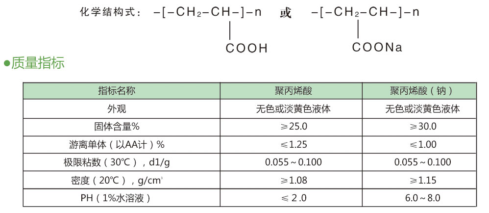 聚丙烯酸及其鈉鹽是一種低分子量聚合物,是目前應(yīng)用廣泛的聚羧酸型水處理藥劑之一,可以單獨(dú)使用,也可與有機(jī)膦酸鹽、有機(jī)磷酸酯或聚磷酸鹽復(fù)配使用,有較好的協(xié)同效應(yīng),對(duì)碳酸鈣垢阻垢效果尤為明顯。在高PH、高濃縮倍數(shù)下運(yùn)行不結(jié)垢。聚丙烯酸排放時(shí)不會(huì)污染環(huán)境。