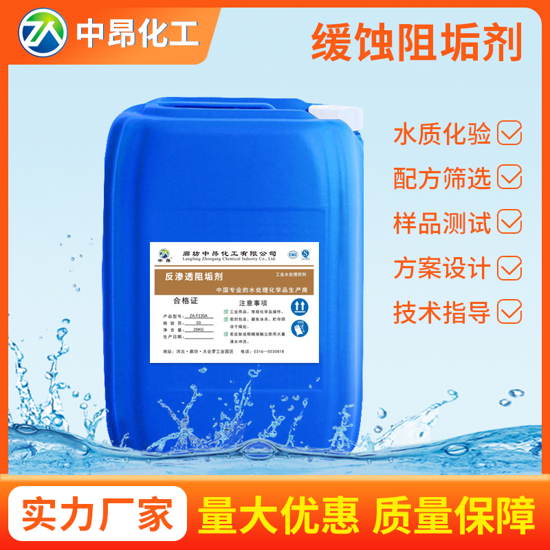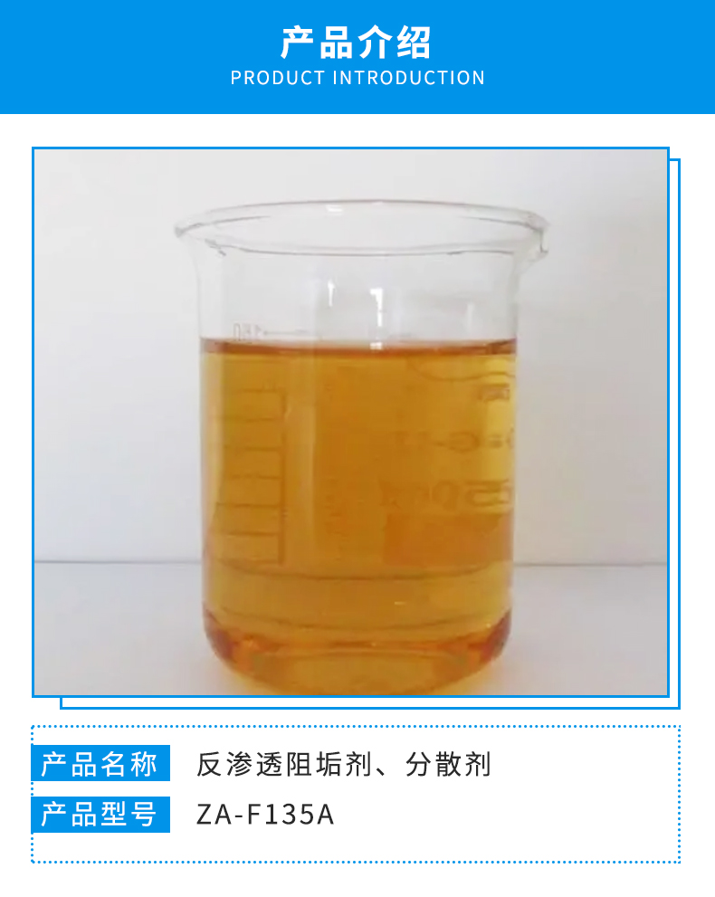ZA-F135A是用于反滲透系統(tǒng)的專用阻垢劑,能有效的控制無機鹽垢在膜表面的沉積。